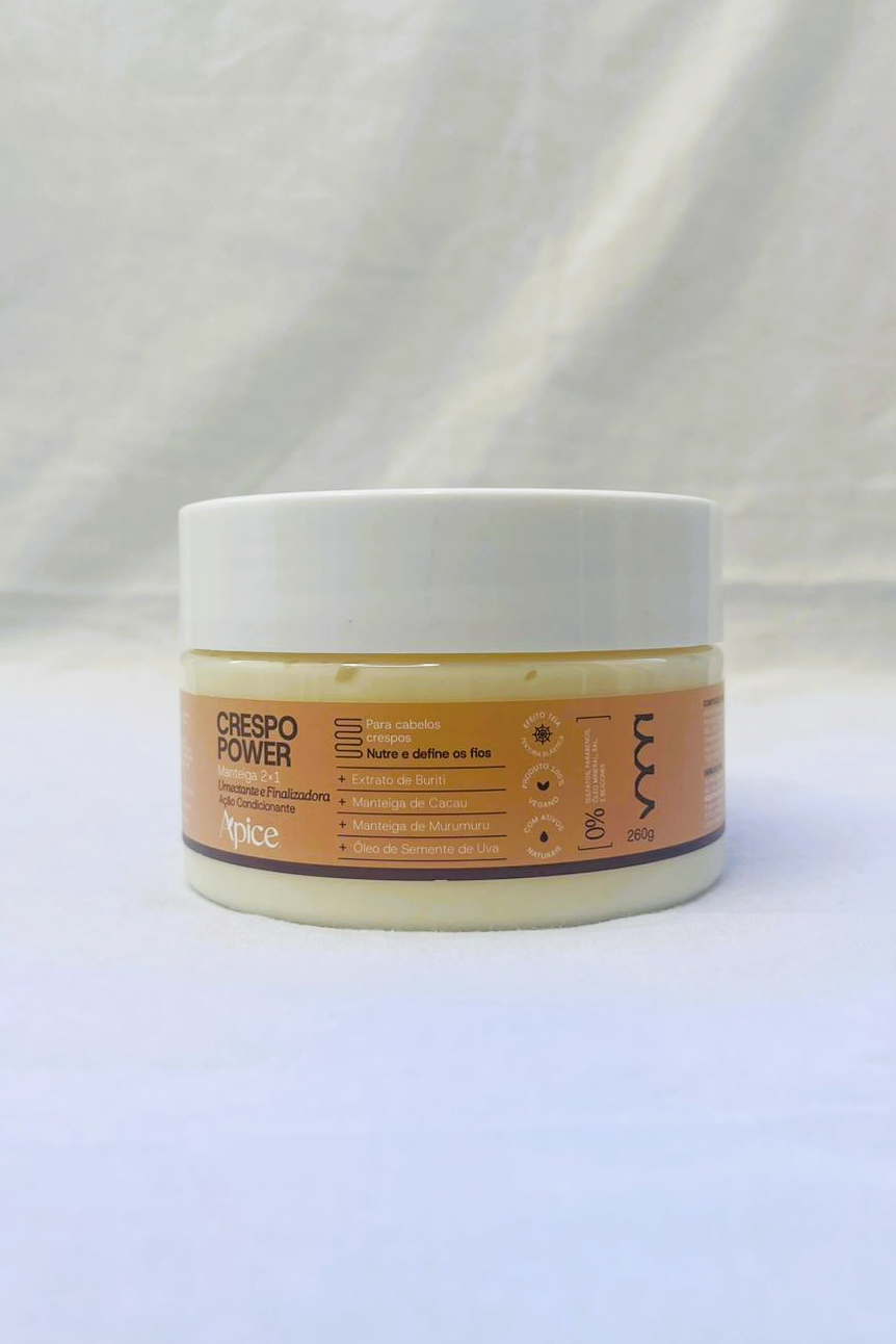 A Manteiga 2×1 Crespo Power foi desenvolvida para revitalizar cabelos crespos e porosos que precisam de um tratamento completo. Sua fórmula rica em manteigas e óleos vegetais oferece nutrição profunda, força, maciez e brilho intenso. Além de tratar, também finaliza e modela com leveza, alinhando os fios e reduzindo o frizz.